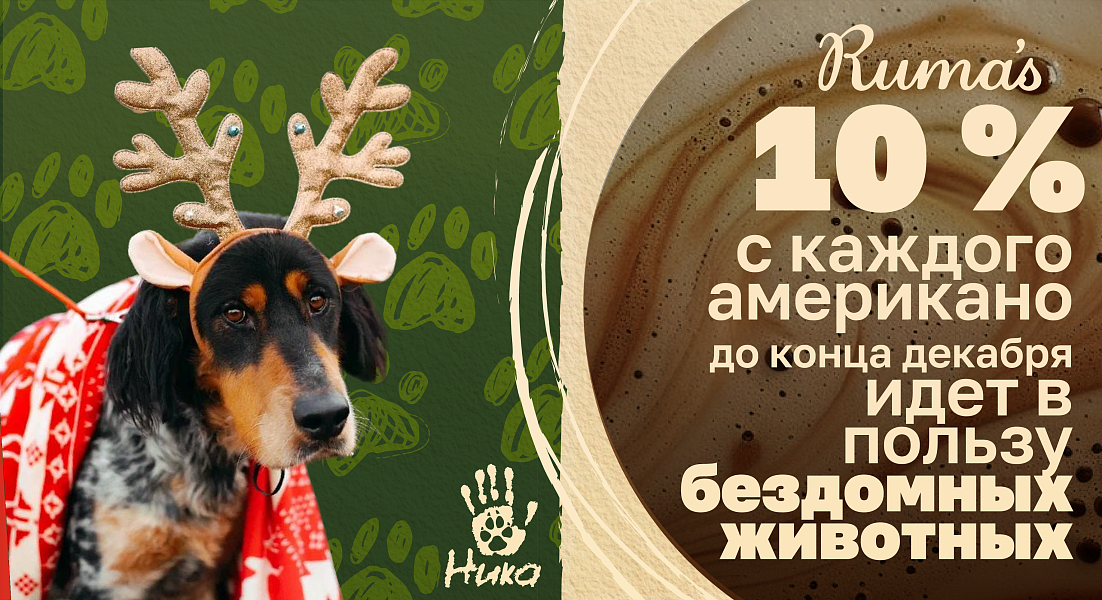 Фонд помощи животным «Ника» и сеть кофеен Ruma’s в декабре запустили совместную благотворительную акцию в поддержку кошек и собак, находящихся под опекой фонда.