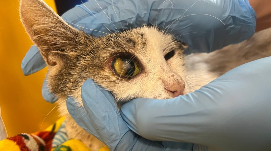 Так к нам попала Моти, ее состояние при поступлении было ужасным: истощенная, сильно обезвожена, с язвой глазика и желтушными слизистыми. Видно, как ей больно и мучительно. Кроме этого, из её носика и глаз явные вирусные выделения…