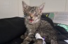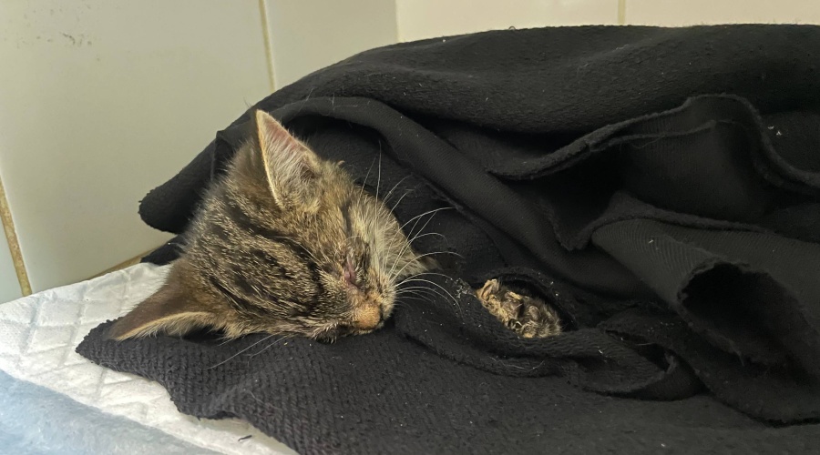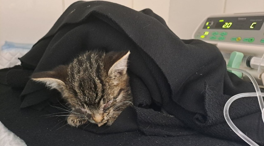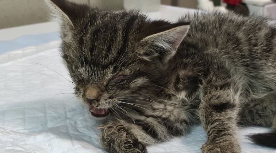 Капелька была обезвожена, с крайне низкой температурой, болезненным животиком и глазками, покрытыми гнойными корками.
