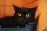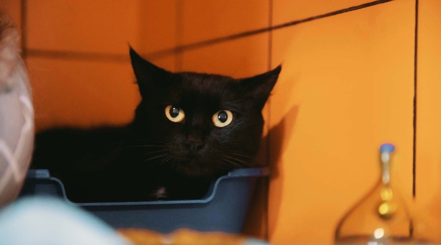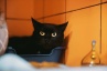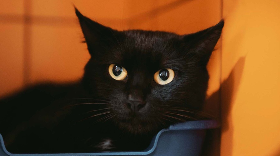 У неё гладкая, блестящая черная шерстка, огромные желтые глаза, девочка очень красива!