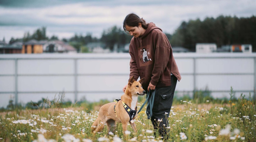 Попала в приют искать свою судьбу. Молодая, небольшого размера, скромная и застенчивая. Ее иногда могут испугать какие то звуки и обстоятельства, но она учится, старается. Занимается с кинологом и делает успехи. Неплохо ходит на поводке ( только шлейка) немного тянет. К людям агрессии нет. С другими собаками общается хорошо, но будет спорить за пищевой ресурс. Ищет человека, который сможет уделять собаке время для занятий, в идеале проживание в загородном доме с участком.