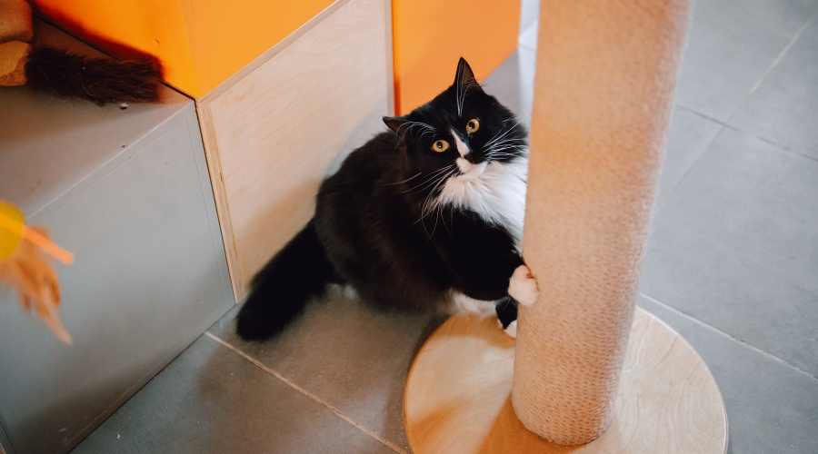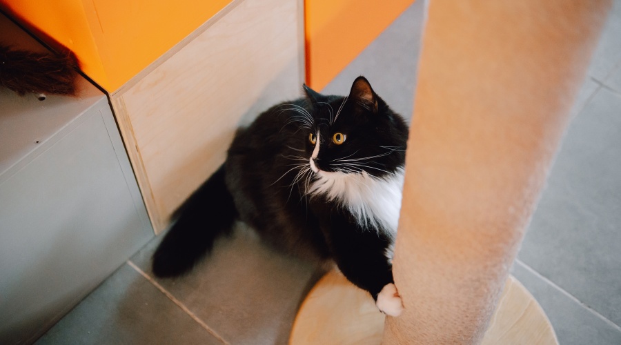 Мокко — кот, который пережил множество трудностей на улице, и его поведение отражает этот опыт.